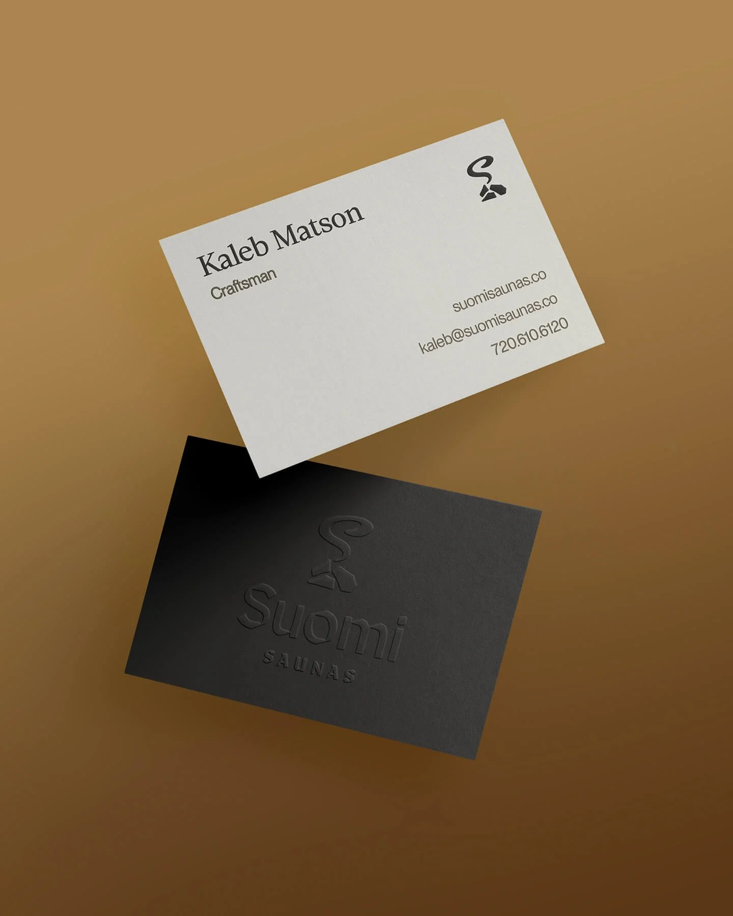The logo for Suomi places the steam at the heart of the brand: a plume of steam forms a large “S”, rising up from a collection of three stones along the base. The icon is paired with a customized, calligraphic sans-serif wordmark—evoking an ancient tradition but drawn with sharp angles that speak to the modern, high-quality nature of the craft. The letters feature slightly-rounded corner radii on each apex and stem, echoing the form of the stones in the icon.